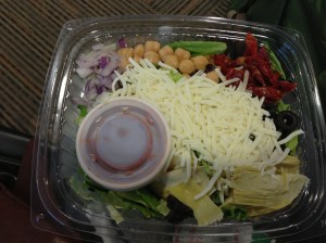 As promised, I am getting to the topic of fattening salads. Yes, salads. Last night, amidst the airport full of tasty yet devastatingly high calorie food items, I was able to make a healthy dinner choice thanks to labels … even if I was somewhat shocked into my decision.