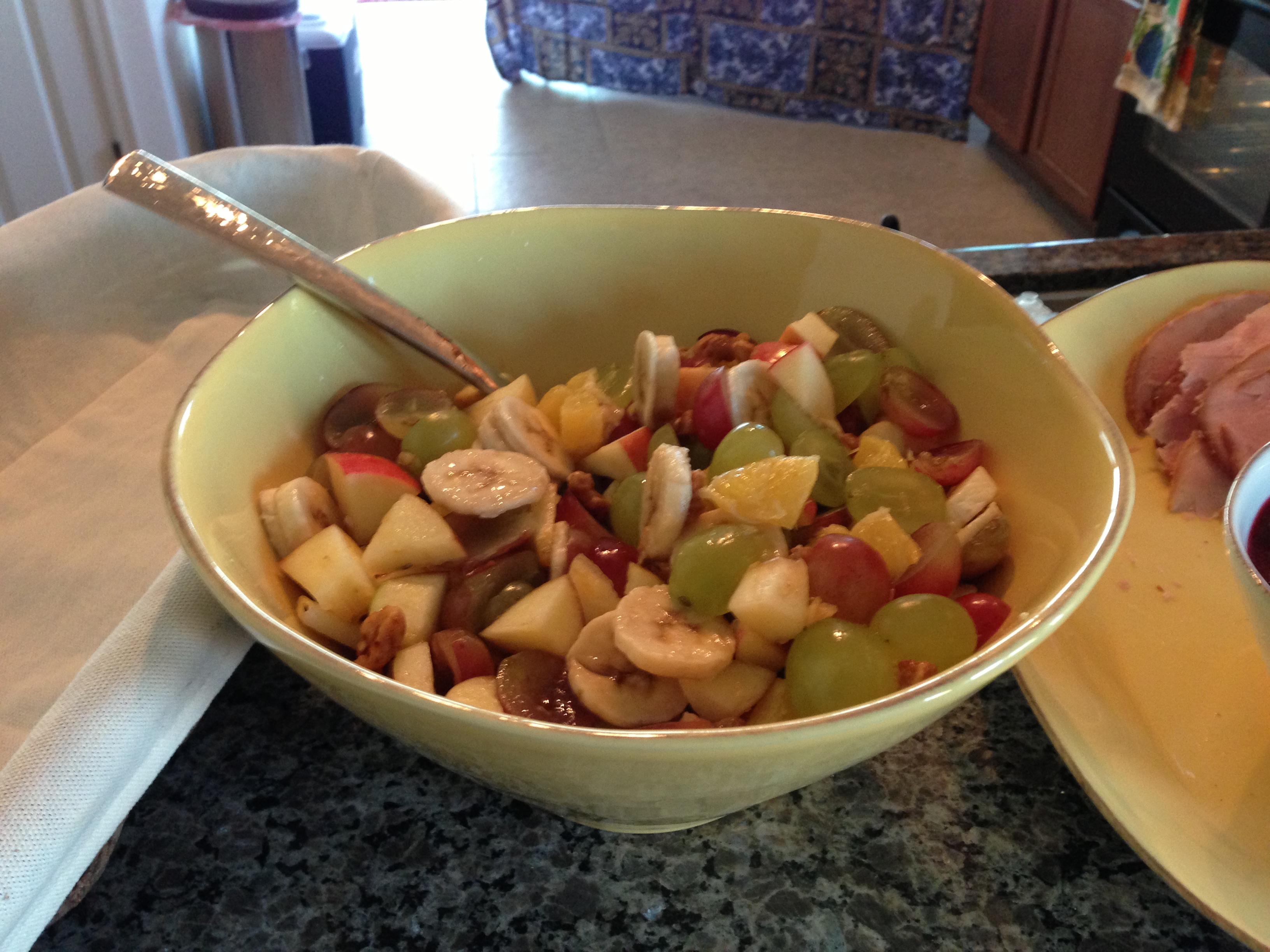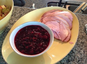 While the boys were busy, Daniel’s mom, Reny, and I got all the other dishes out on display. I don’t know how it happened, but I missed a close up of the purple mashed potatoes. There are a TON of left-overs so there will no doubt be another photo opportunity. With the exception of mashed potatoes, this was the spread: