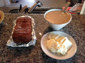 9) pumpkin bread & condiments: onion, butter, and gravy (Daniel’s mom, Reny made the gravy which is sinfully good!)