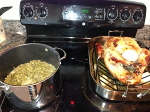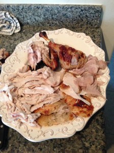 After all the hype leading up to today’s meal, I guess you’re wondering how it went. It was fantastic, but the company around the table was even better! We even ate at 5:15 – not bad for not having a clue how long everything would take to cook. What was the most surprising event of the day? Our 12.59lb turkey only took 1hr and 40mins to roast! I had heard brining sped the cooking process, but I wasn’t expecting that fast. The only mishap of the day? The turkey guide I followed said to cook the bird breast-side down for 30 minutes on 500 degrees. I may or may not have charred the back side because the rack was arranged too close to the top of the oven. Whoops! When I realized we were heading toward an inadvertent blackened turkey, I just lowered the rack a level and turned the oven temperature down to 350 degrees (per the instructions). So the Turkey may not have been cover-photo qualified as I had hoped it would be, it was as juicy as the Petraeus gossip. Too soon? But seriously, it was the most tender roasted turkey I’ve ever eaten – and what flavor! If you’ve never brined a turkey before, put it on your bucket list. I don’t know if I’ll ever try anything else.