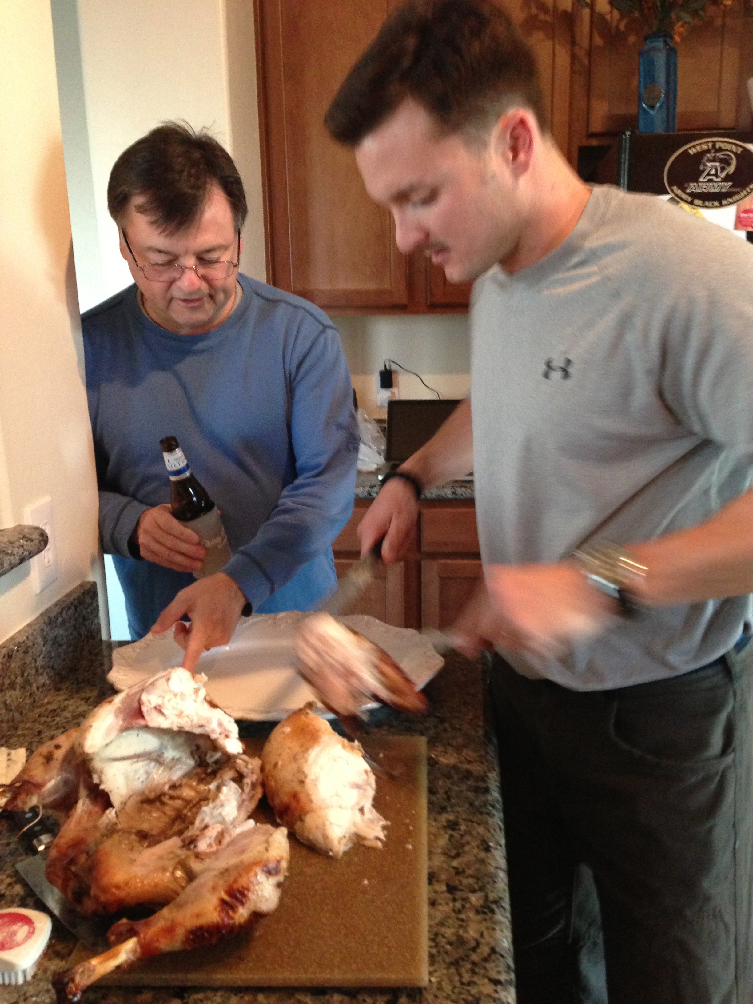 After 25 minutes of resting, Daniel was given carving duty instructed by his dad.