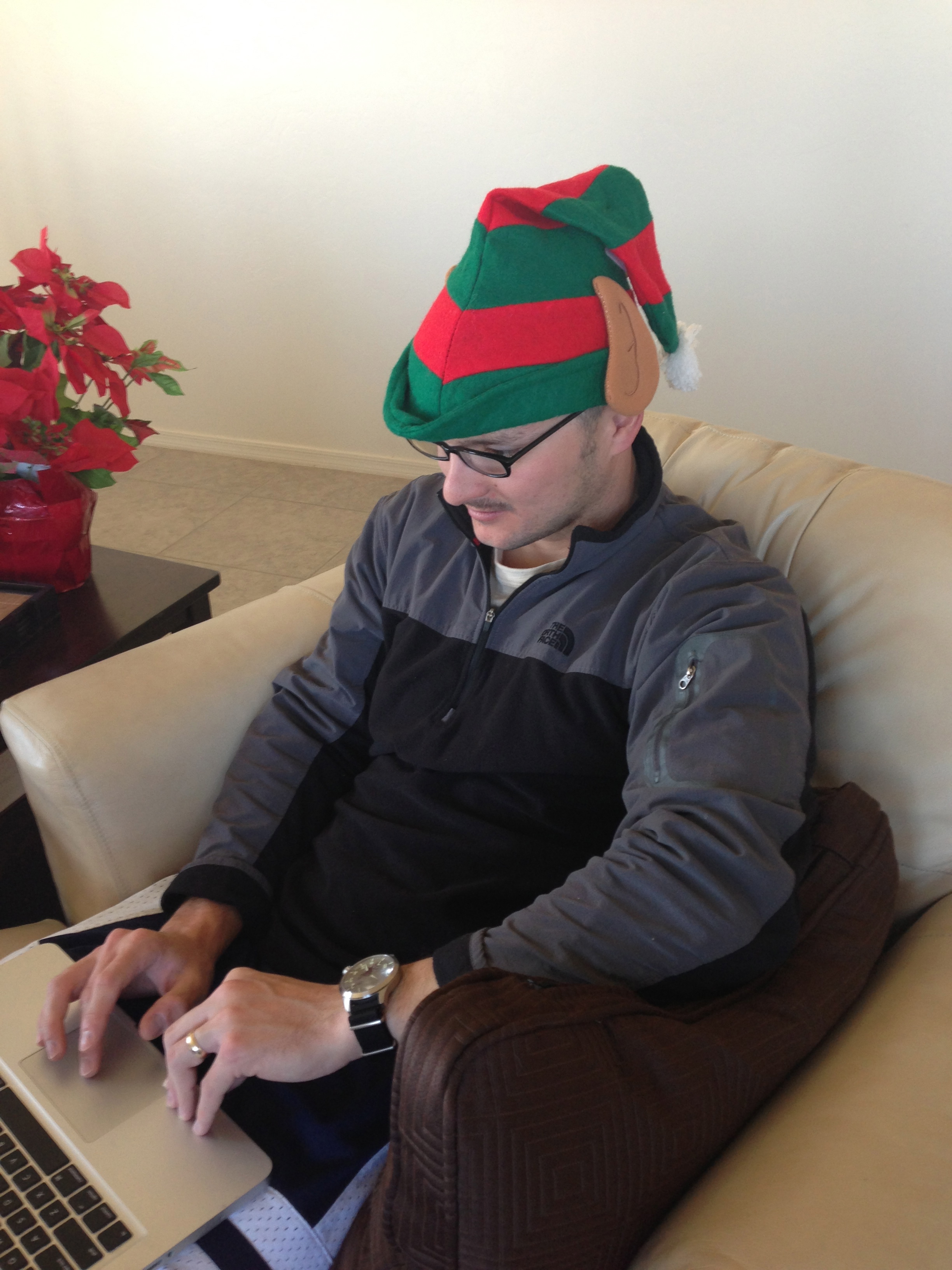 We kicked off the day in full holiday spirit. Can you tell? That’s my elfin husband doing some online birthday shopping. For some reason, he reminded us of Hermey, the misfit elf that wanted to be a dentist, from Rudolf. Not sure why since Daniel doesn’t have blonde hair and Hermey doesn’t have glasses. Must be that they both have the misfit thing going on.