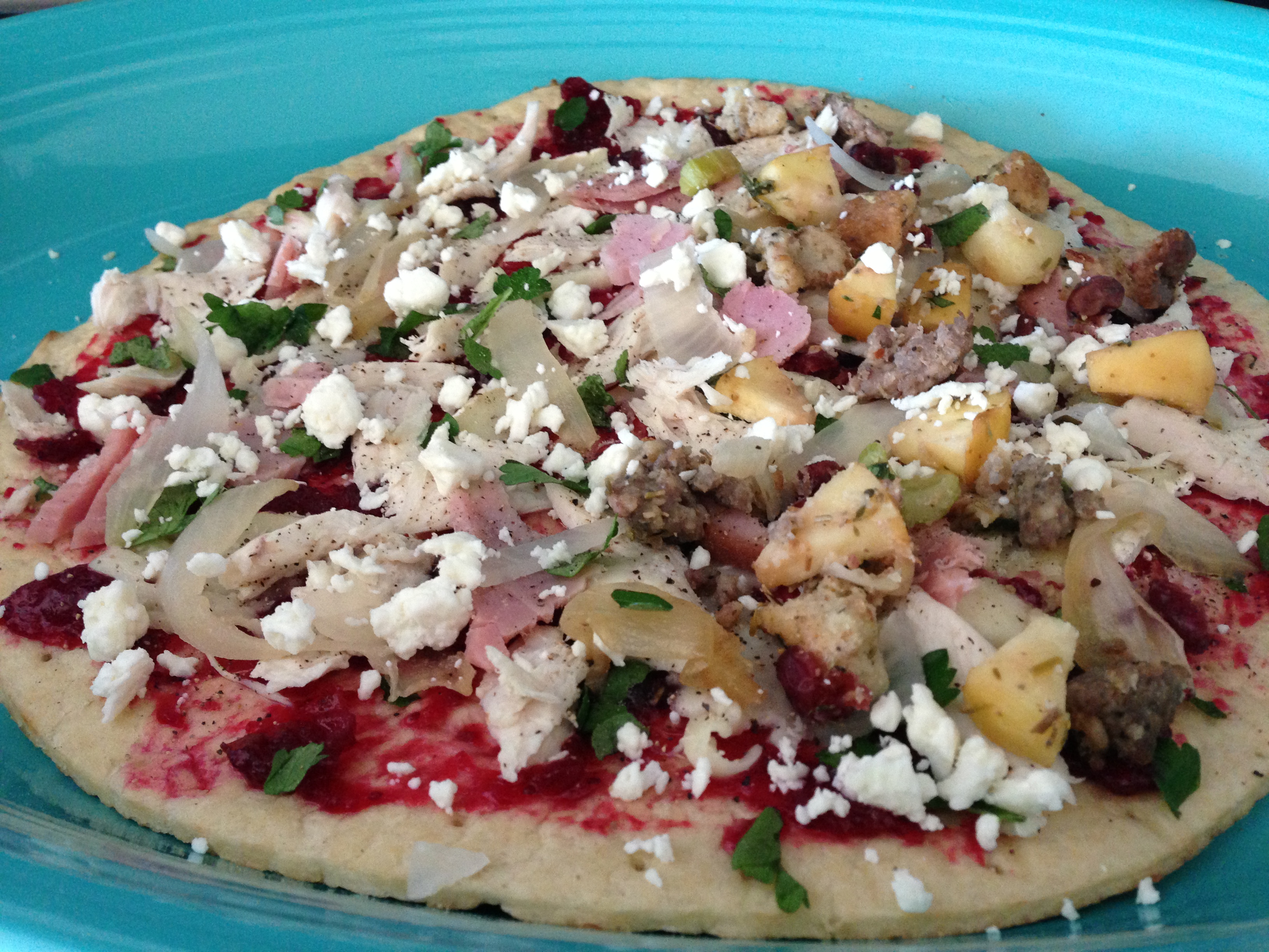 1/4 cup leftover stuffing – I used the apple cranberry sausage stuffing on half of the pizza