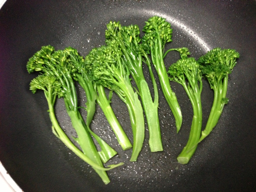To balance out the sweetness of the saucey chicken and the starchiness of the rice we had some delicious broccollini!