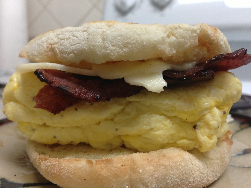 This morning began with my rendition of McDonalds’s bacon, egg, and cheese McMuffin.