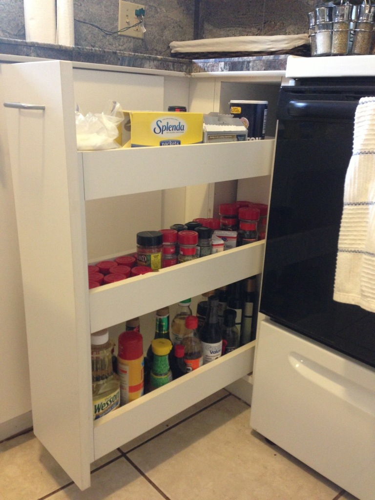 I’m not the tallest girl on the block so the fact that I don’t have to store my spices and oils in a cabinet above my head is a HUGE help … and money saver. I mean how many times have you thought you were out of ground cumin, gone out to buy a new 2oz bottle for like twenty seven bucks, just to come home and find it hidden behind your pepper shaker?