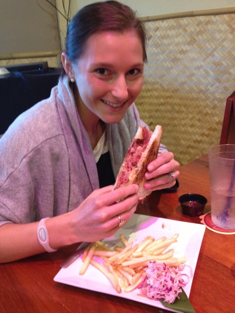 Since our things just de-trucked, we don’t have cable. This meant we had to take a moving-in day break to catch the second half of the Roll Tide Championship!! We went to a place called Breakers in the neighboring town (about two miles fr our house) and carb-loaded for rest of our unpacking job. Reuben specials all around.
