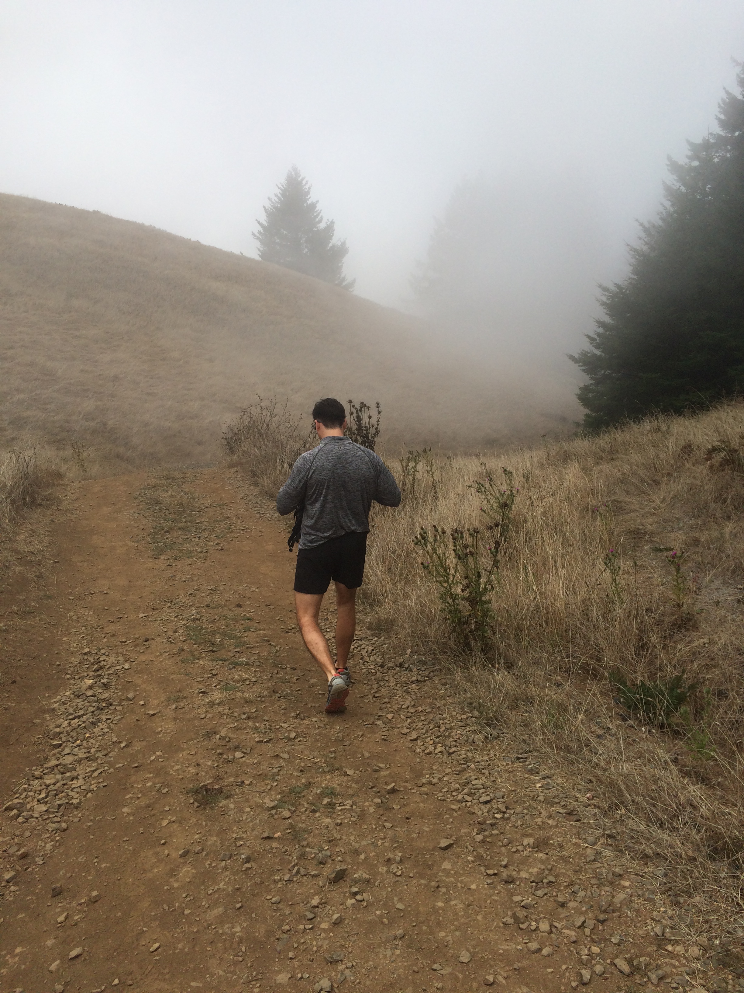 We finally confirmed a trail within an acceptable driving distance, about 19 miles away. Upon exiting the city the temperature was hovering around 67 degrees, peaked around 76 after crossing the Golden Gate Bridge, and then dropped to a misty 56 degrees when we finally reached the parking lot to start our hike (1 hr 34 min later!) Compared to temperatures surpassing 100 degrees across the bridge last weekend, this was unexpected.